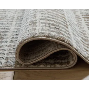Make a refined style statement with this contemporary area rug. Subtly sophisticated with a classic stripe pattern, it brings a feel of movement underfoot. And thoughtfully curated neutral hues in ivory, brown, gray and black give this rug the versatility to pair with your preferred color palette.