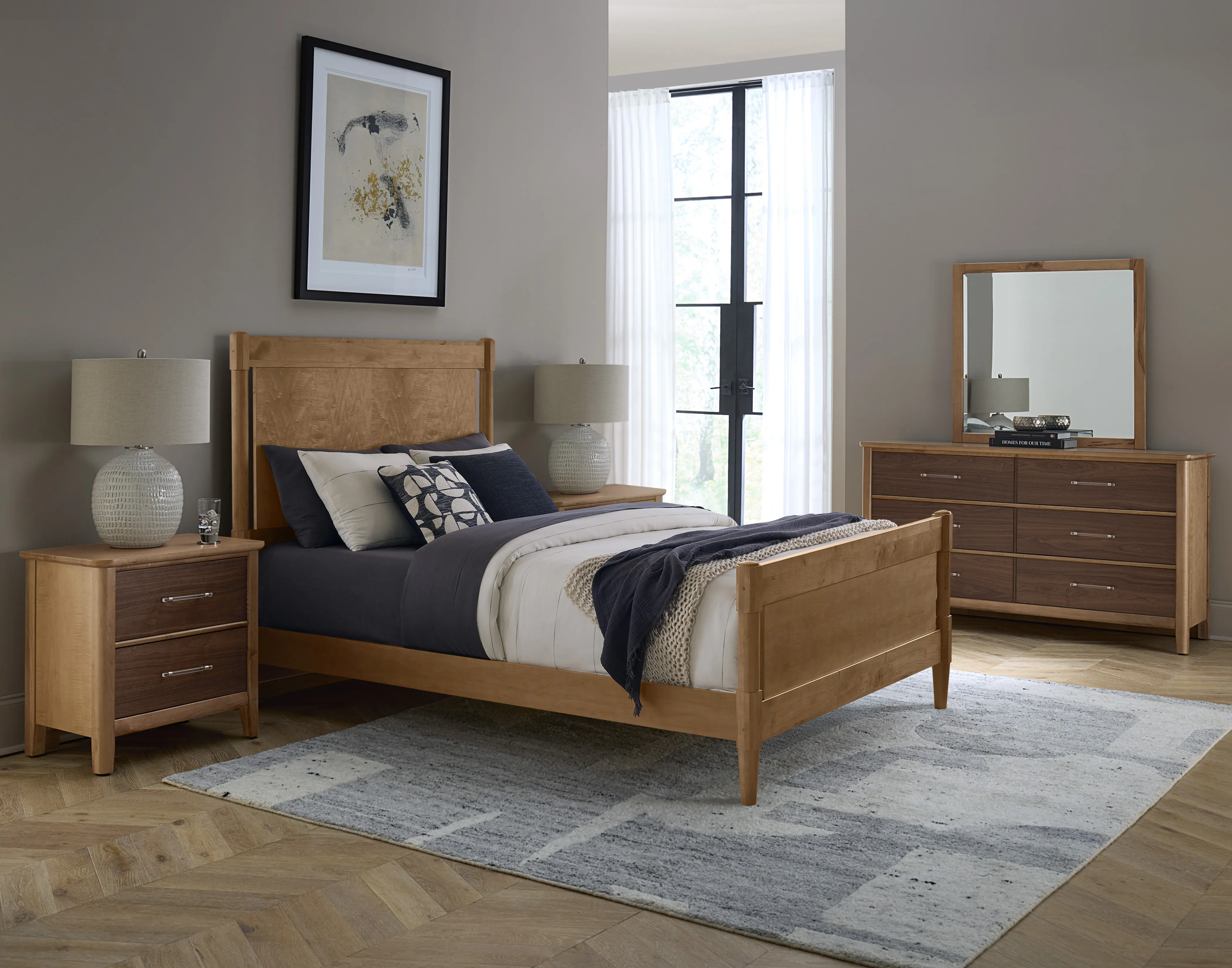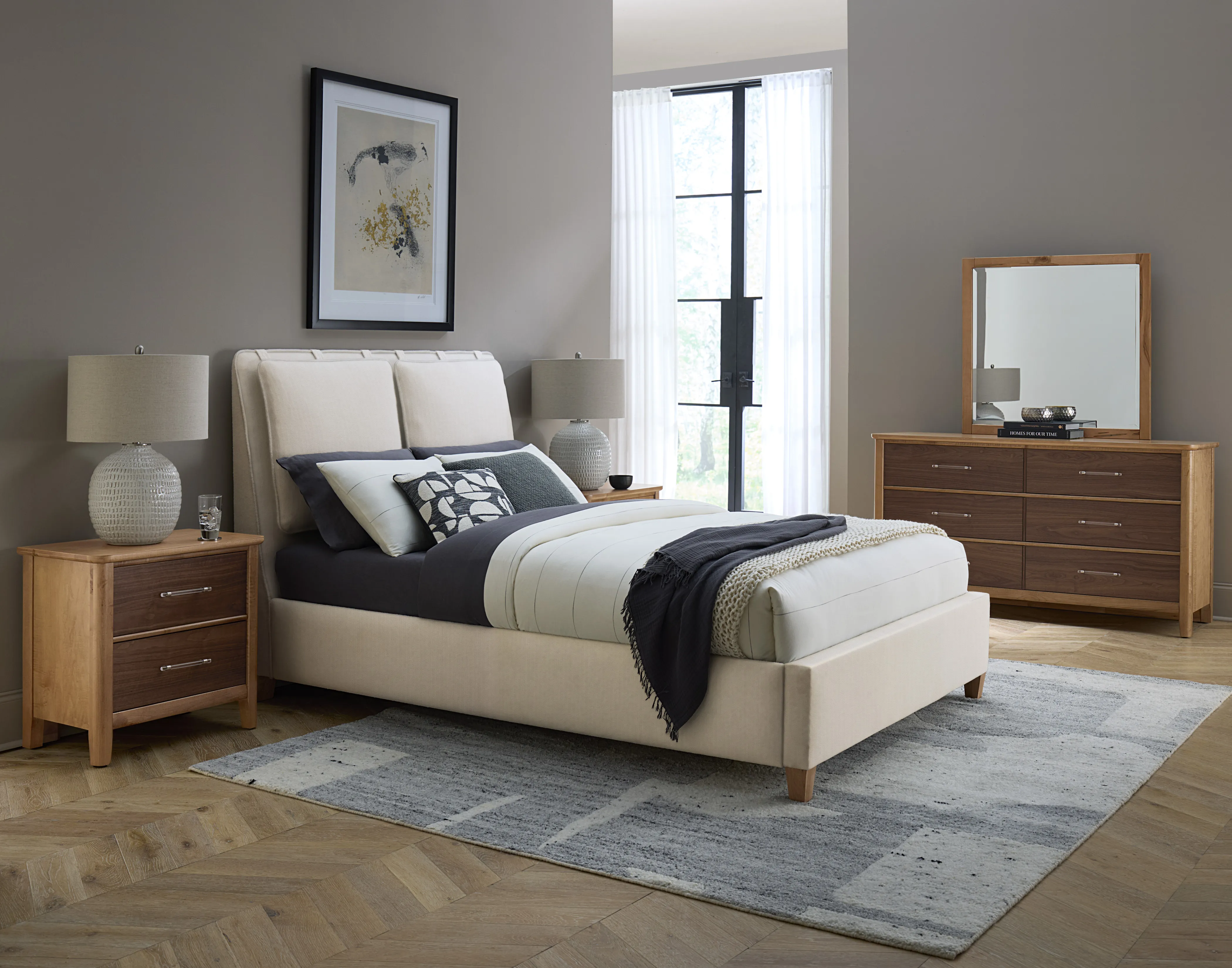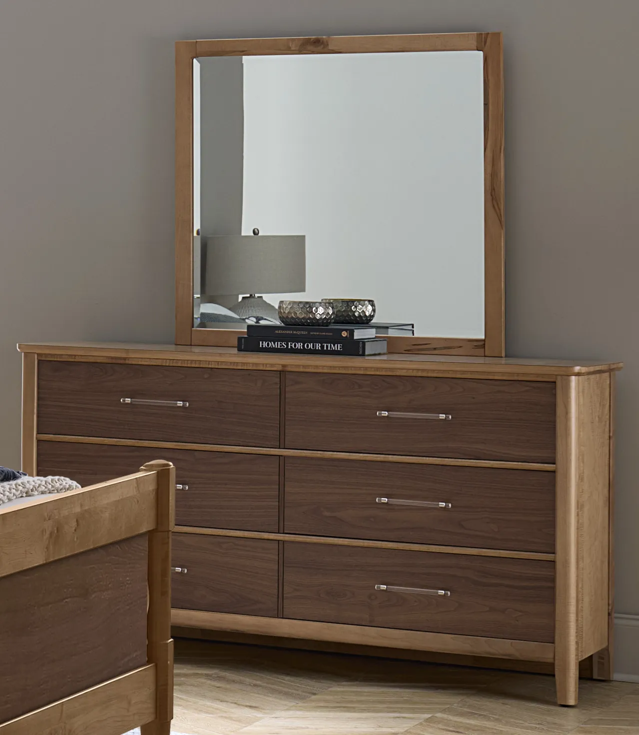 The Six Drawer Dresser exemplifies contemporary design coupled with traditional craftsmanship. Constructed from robust solid maple and enhanced by elegant walnut veneers; this piece offers enduring sophistication through its streamlined profile that accentuates the natural beauty of the wood grain. The integration of layered veneers further enhances its visual depth and refinement.