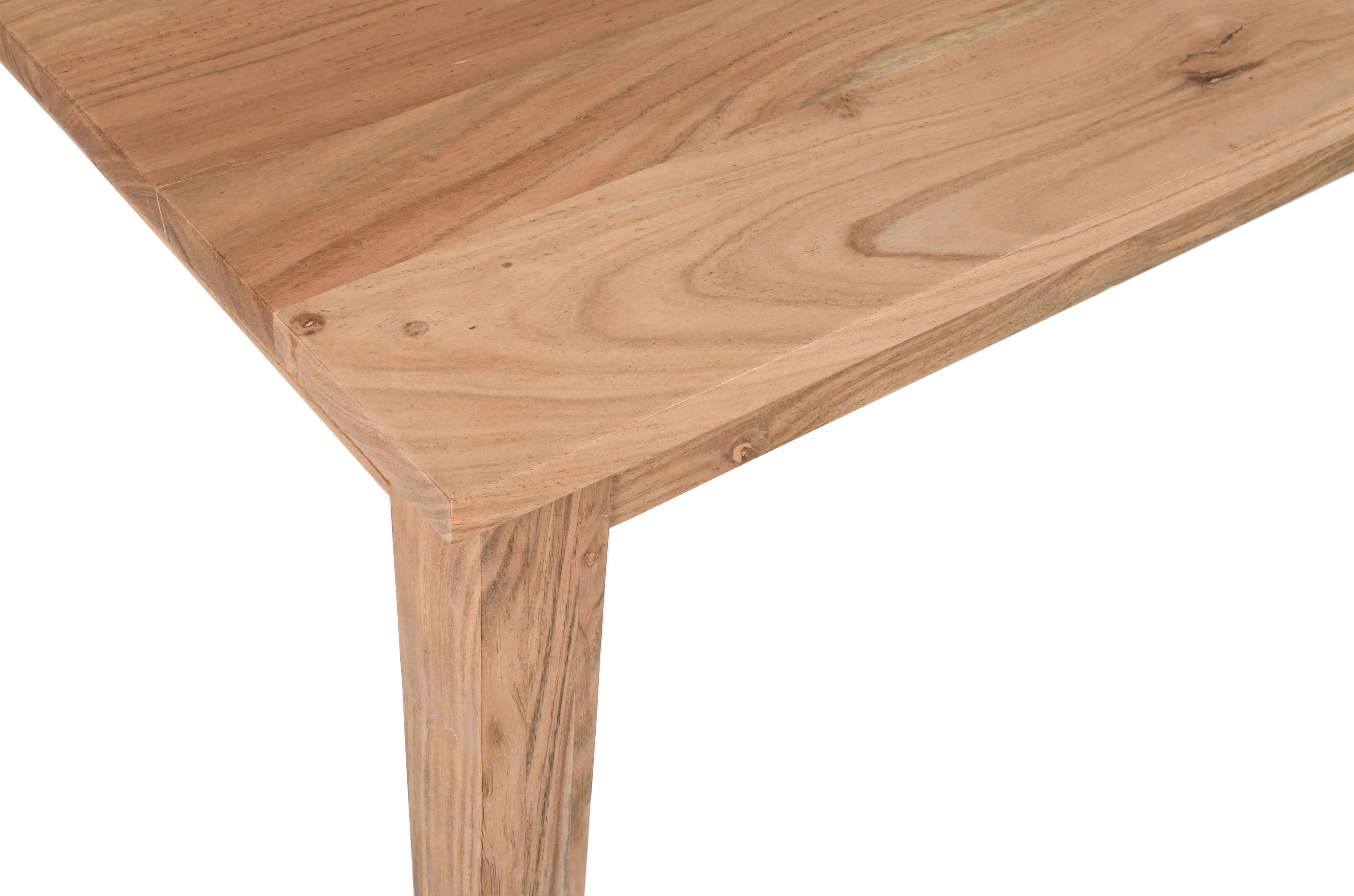 - -Solid Mango Wood -Classic Squared Leg Design -1" Thick Hardwood Table Top -Rich Natural Light Brown Finish -40" Square Shape - -