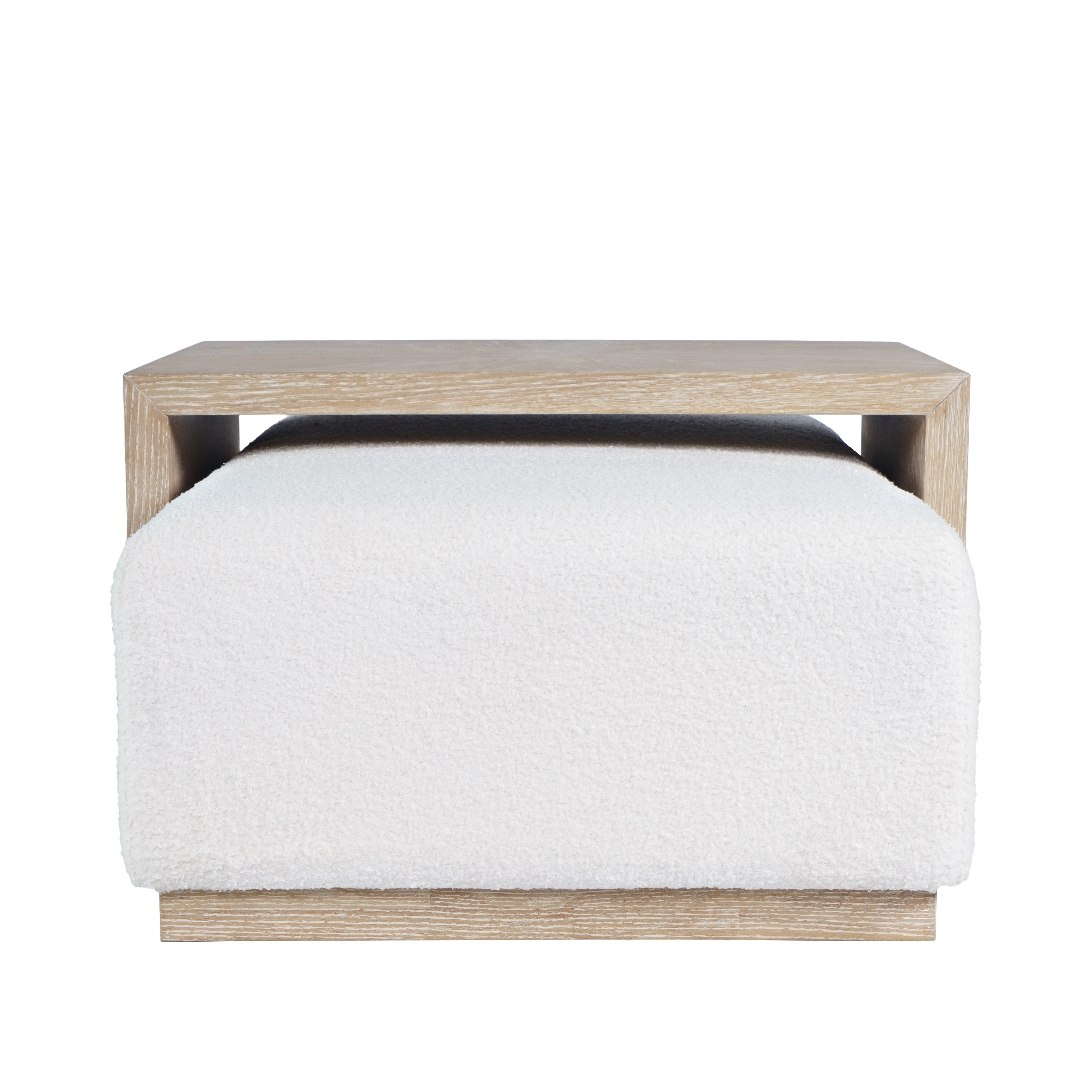 Elevate your living space with the Hudson Sliding Ottoman. Crafted with plush ivory boucle fabric and a sleek wood base, this 48" ottoman exudes modern luxury. Its deep cushioning invites you to sink in, offering both comfort and style. What sets it apart? Caster wheels ensure effortless mobility, allowing you to adapt your space with ease. But here's the ingenious twist: included is a 30" wooden coffee table top that effortlessly slides over, transforming it into a chic coffee table. This versatile piece seamlessly transitions between lounging and hosting, offering the perfect blend of form and function. Experience comfort and style like never before with the Hudson Sliding Ottoman.