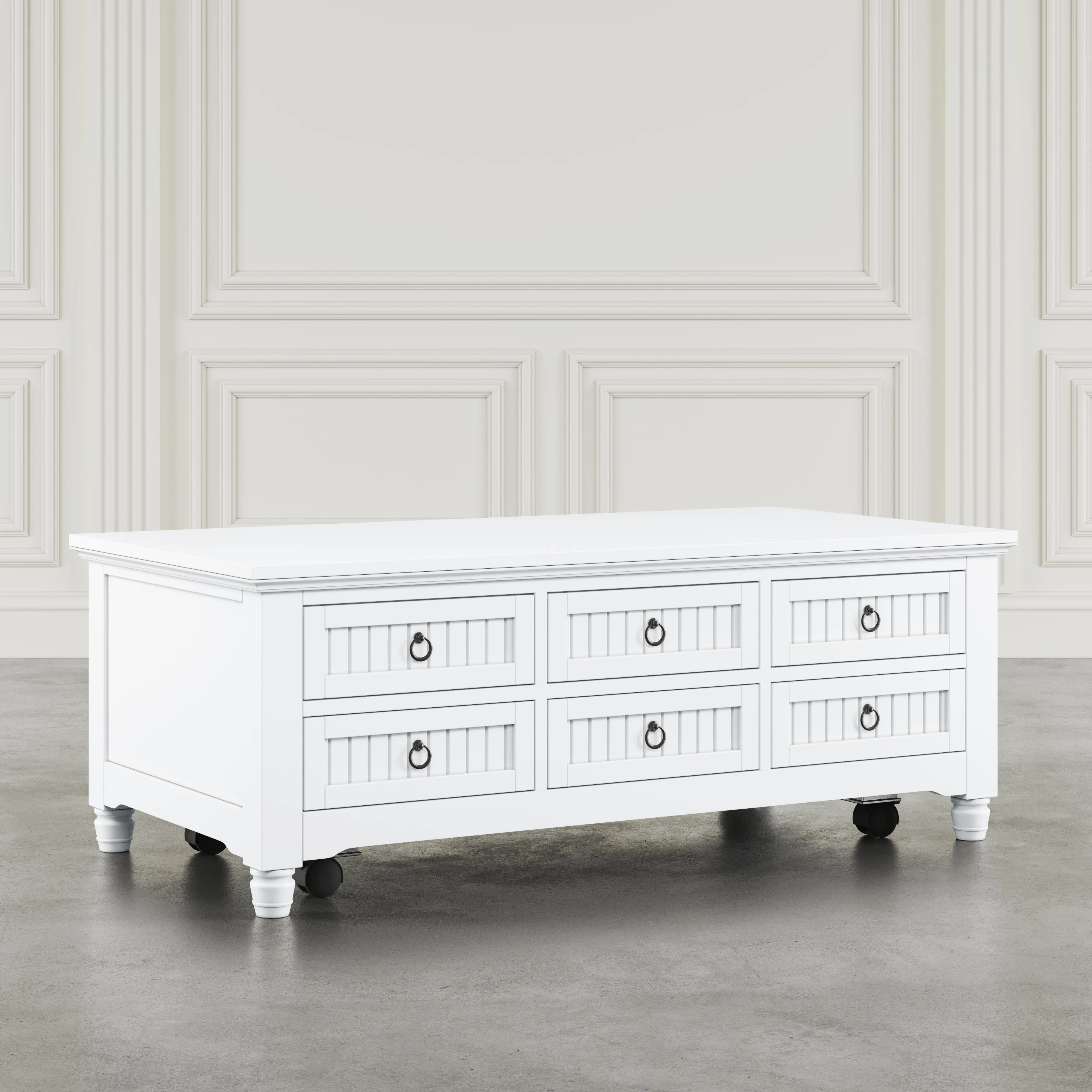 The Westport Castered Leg Coffee Table brings together timeless modern farmhouse design with a modern sensibility for everyday living. Crafted from acacia and veneer, it provides a durable frame with a refined finish that highlights the wood's natural beauty. Carefully scaled for today's homes, it balances function and style with thoughtful details such as smooth lift-top mechanisms, hidden storage, caster wheels, or clean-lined silhouettes depending on the model. The generous top surface is ideal for entertaining, working from home, or displaying decor, while integrated shelves or drawers keep essentials organized. Whether styled in a casual family room, a transitional living space, or a more traditional setting, the Westport Castered Leg Coffee Table adapts seamlessly to your lifestyle. Its versatile character allows it to pair with upholstered seating, wood accents, or modern decor, making it a flexible centerpiece. By combining practical everyday features with classic design notes, the Westport Castered Leg Coffee Table delivers both comfort and confidence. A functional yet stylish addition, it elevates your home with ease.