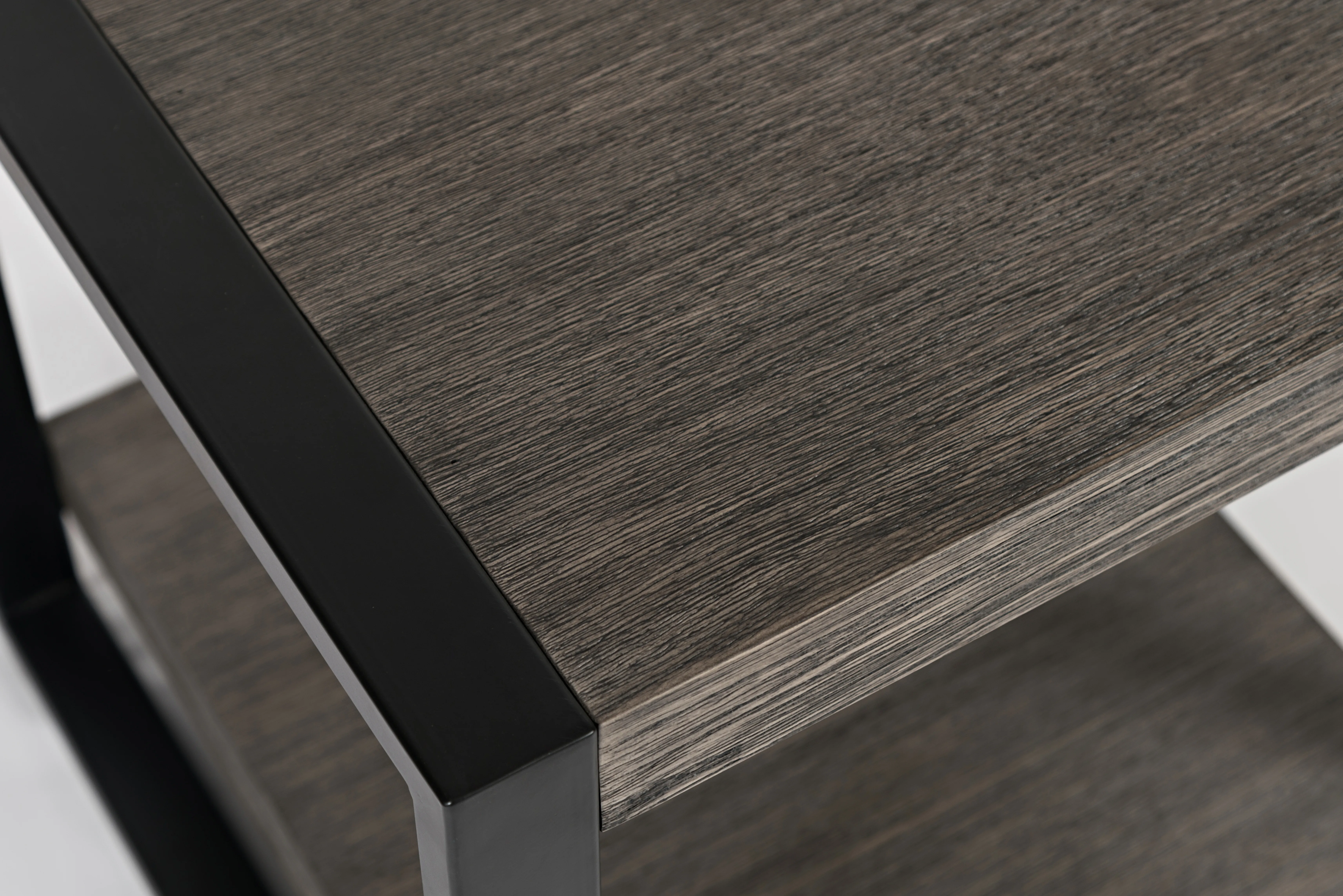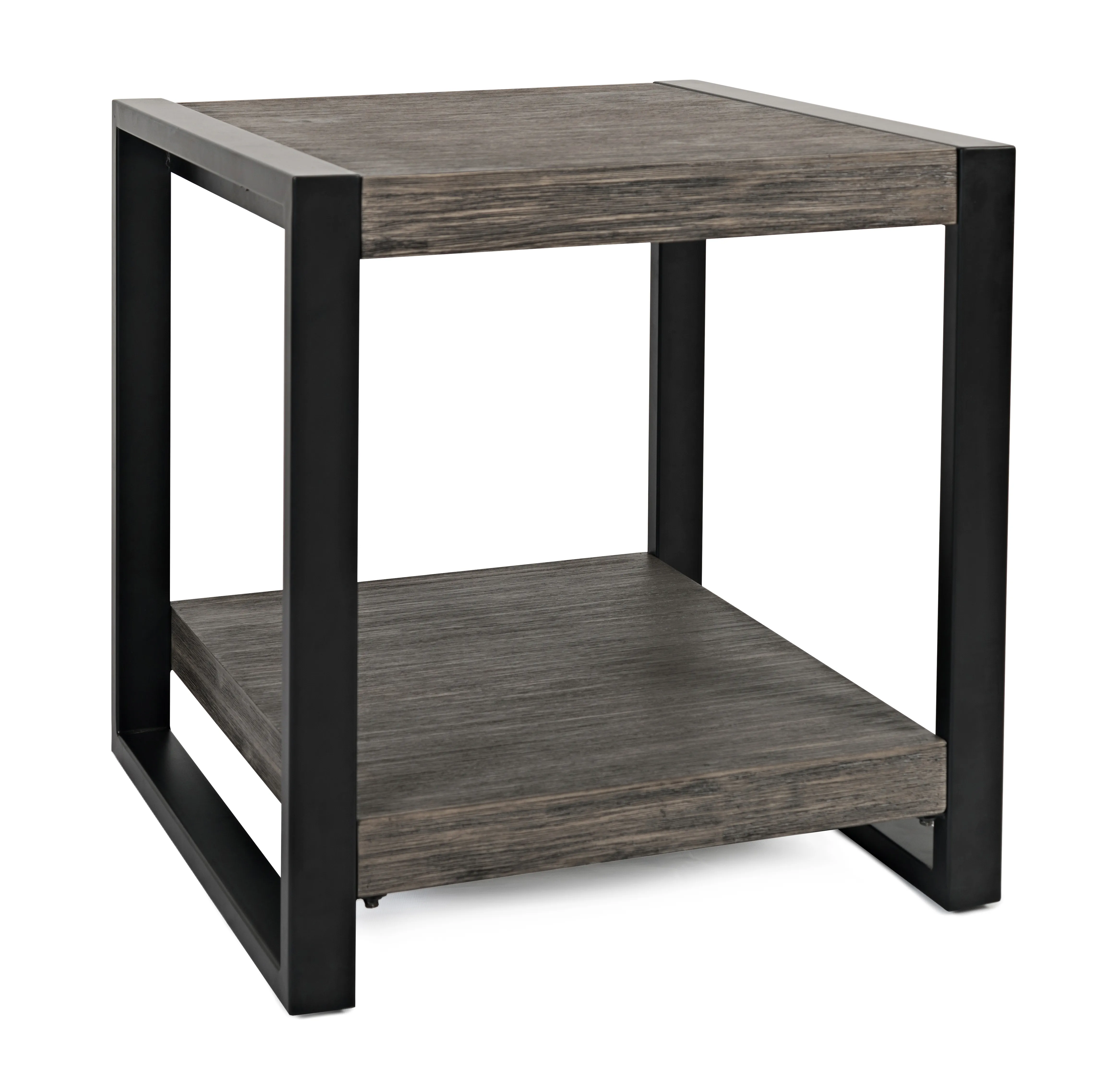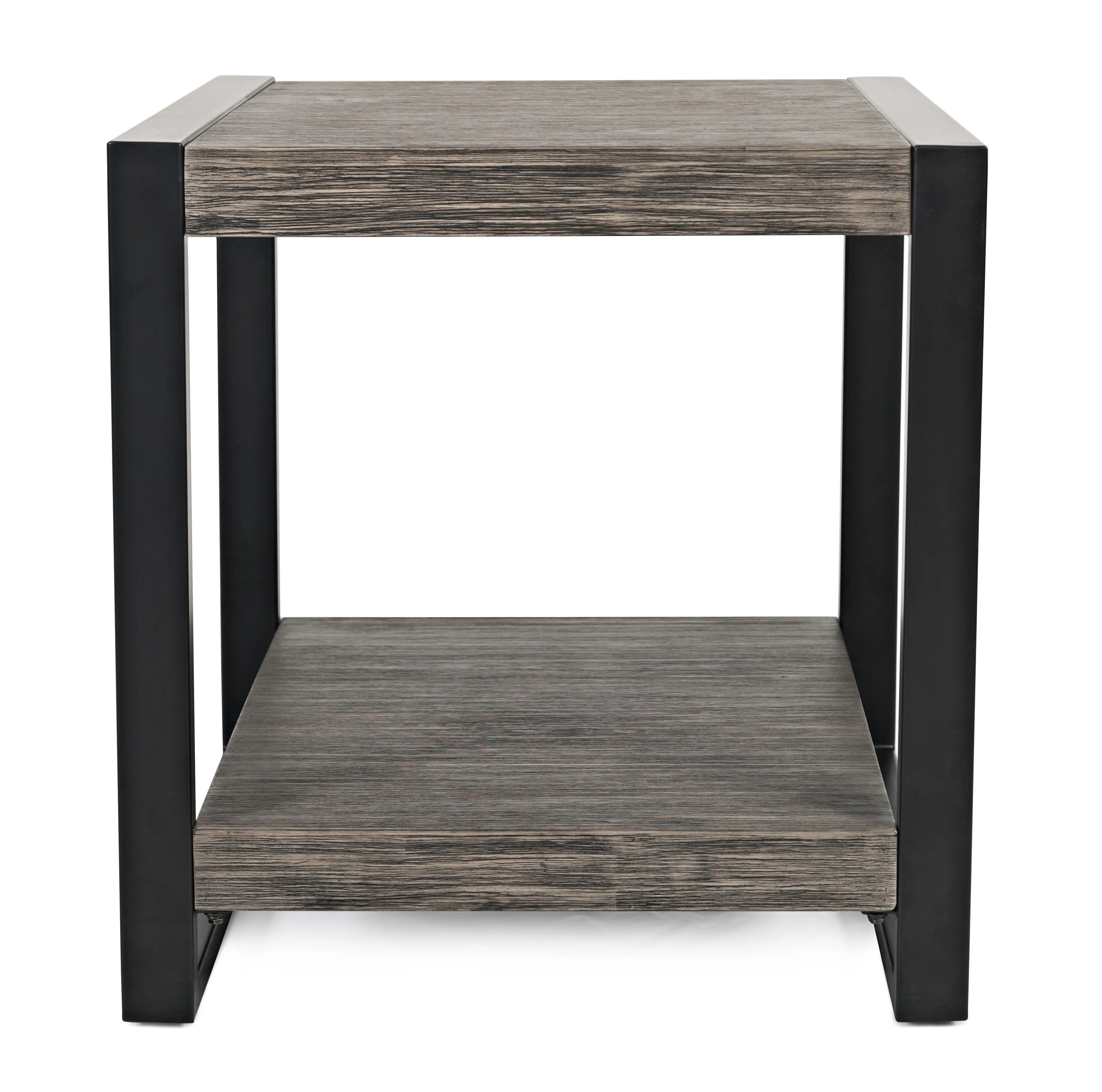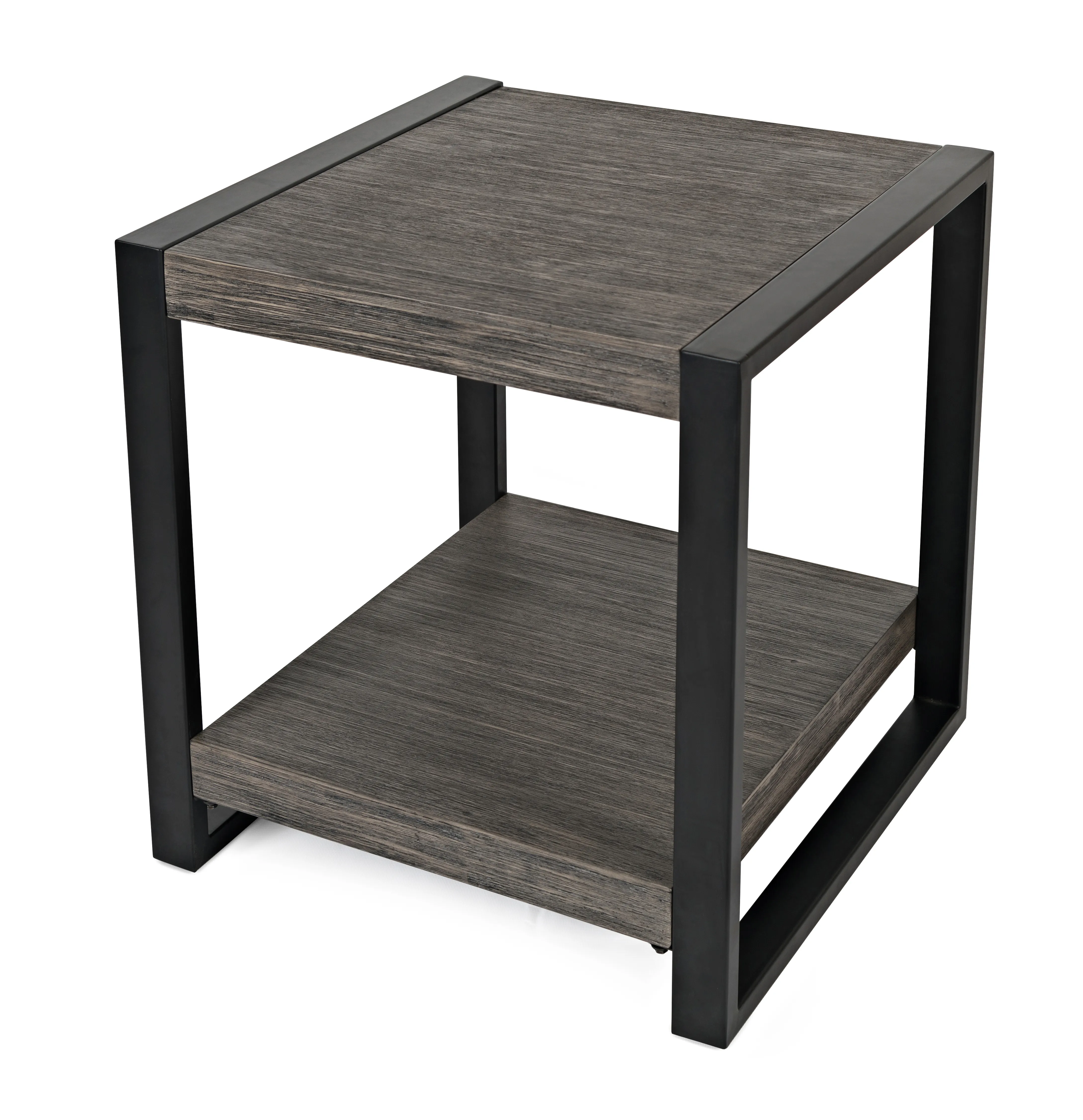 Clean, contemporary design meets industrial style in our Pinnacle collection. This end table combines Acacia solids and wire-brushed veneers with a clean-lined metal frame for a sophisticated look. The lower shelf offers great storage possibilities for your favorite books or other treasures, while the top surface is a great place for a lamp, plant or for your functional entertainment needs.