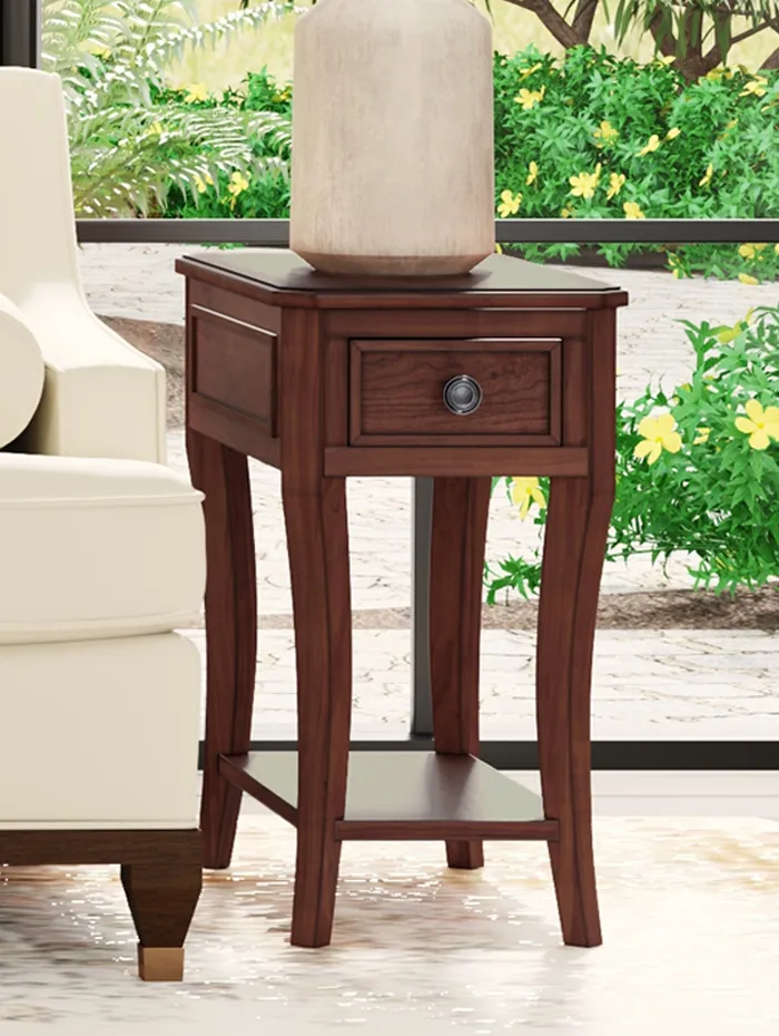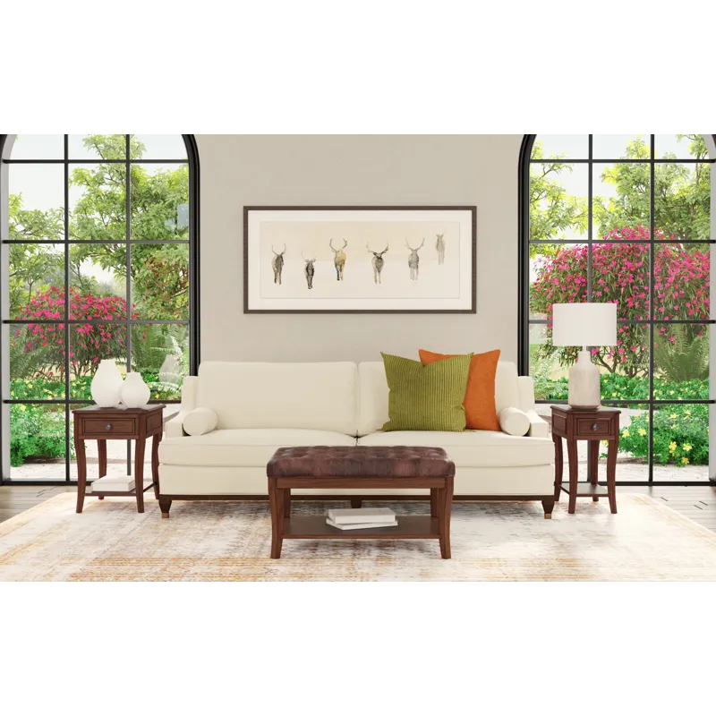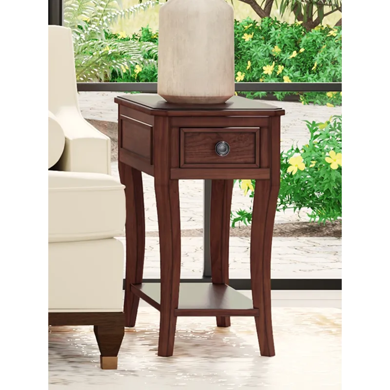 Chesterbrook brings timeless elegance and functional design to your living space. Crafted from poplar solids and cherry veneer, each piece showcases the rich, warm tones of the Autumn Harvest finish, adding a touch of sophistication to your decor. The collection features concave legs, clipped corners on the tops, and framed drawer fronts, creating a refined silhouette that exudes traditional charm. Round antique brass drawer knobs add a subtle yet elegant finishing touch, enhancing the overall aesthetic of the collection.