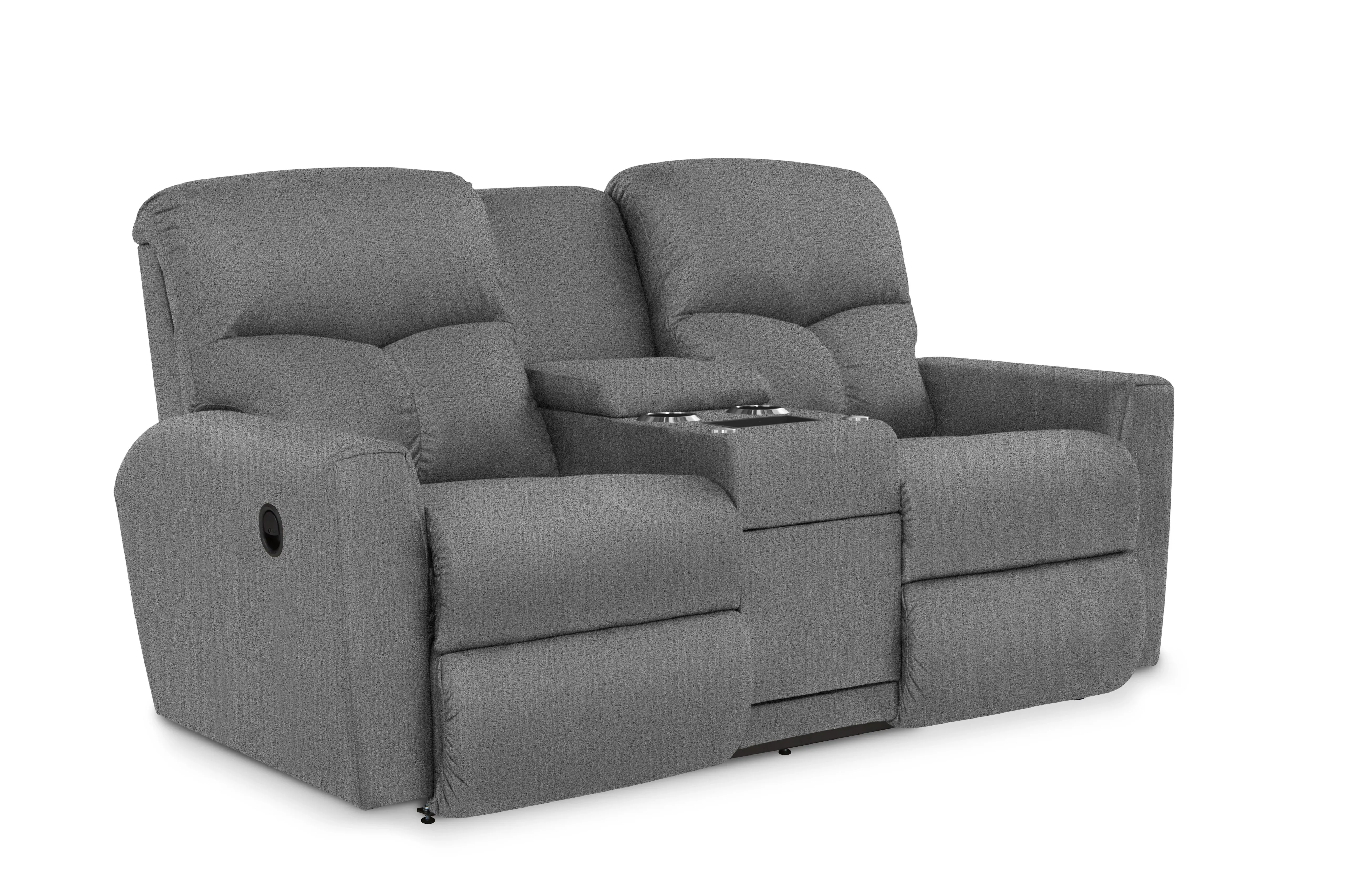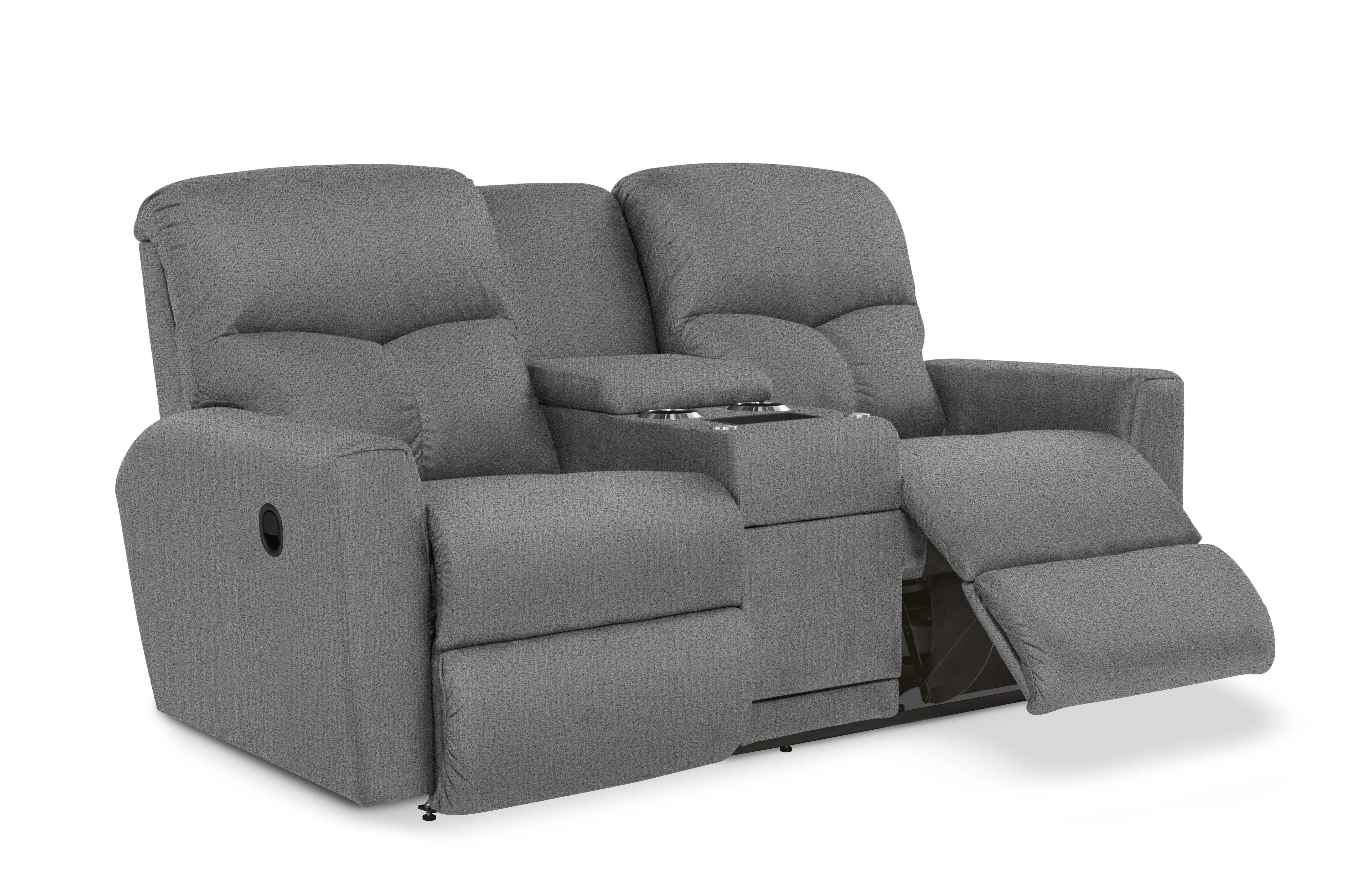 Everything is in reach in the Hawthorn Reclining Loveseat with Console. Its smaller size and console keep drinks and remotes close. The clean lines of the chaise seats and arms lighten the plush curves of the backs for a cozy refresh on casual style.