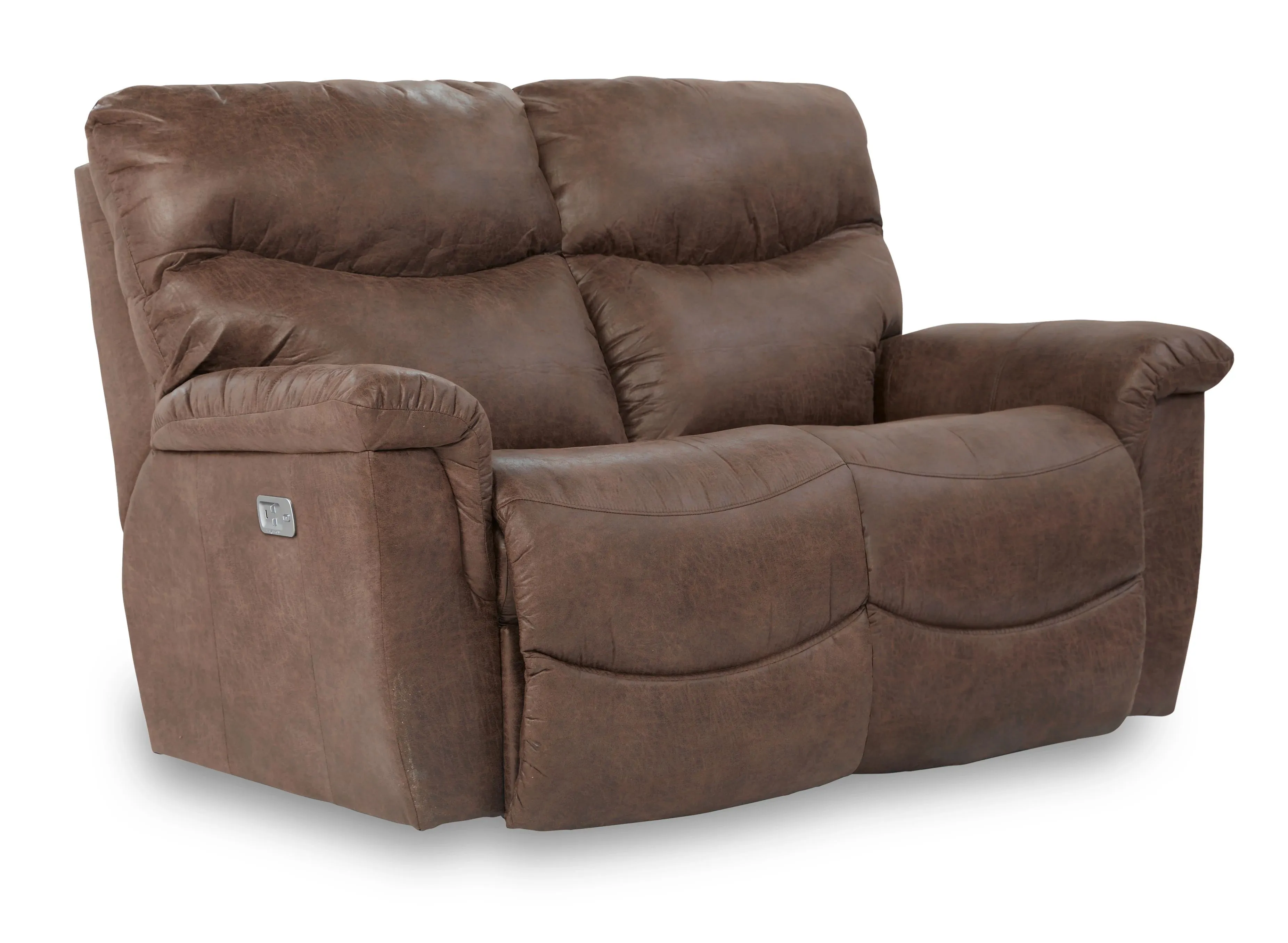 The James Power Reclining Loveseat with Headrest offers generous seating with casual good looks and customizable support. The cushiony backs, sculpted-bucket chaise seats and legrests provide uninterrupted spans of comfort where stress melts away!