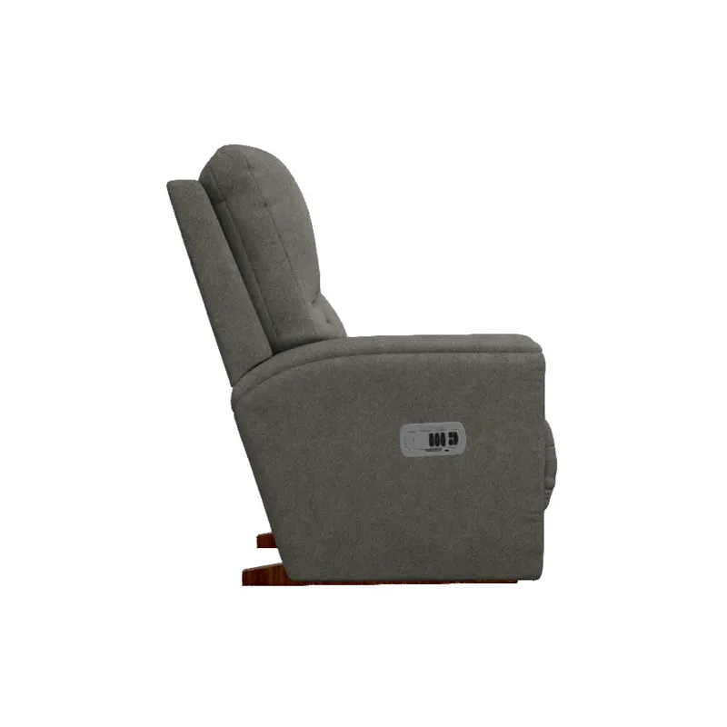 Casual comfort is updated with refined lines in the Cassian Power Rocking Recliner with Headrest. Smooth padding wraps tapered arms and the back has an inset lumbar cushion. Controls ease the head, back and legs to a cozy spot…or just rock and relax.