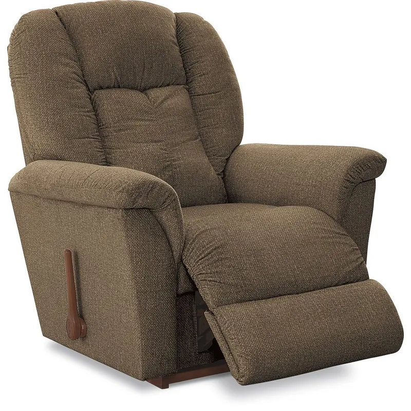 When it comes to comfort, bigger is better with the Jasper Rocking Recliner. Generous in scale, with flared pillow arms and a stitched pillow back cushion, it supports your whole body as you relax in the ultra-plush chaise seat. Patented La-Z-Boy technology allows the seat and back to move together or independently for a wide range of reclining positions, without activating the legrest. Jasper features a wide seat, so it's ideal for larger users. And when you're not reclining, it's a relaxing rocker with a smooth, graceful motion. Make it yours with your choice of fabrics and other available upgrades.