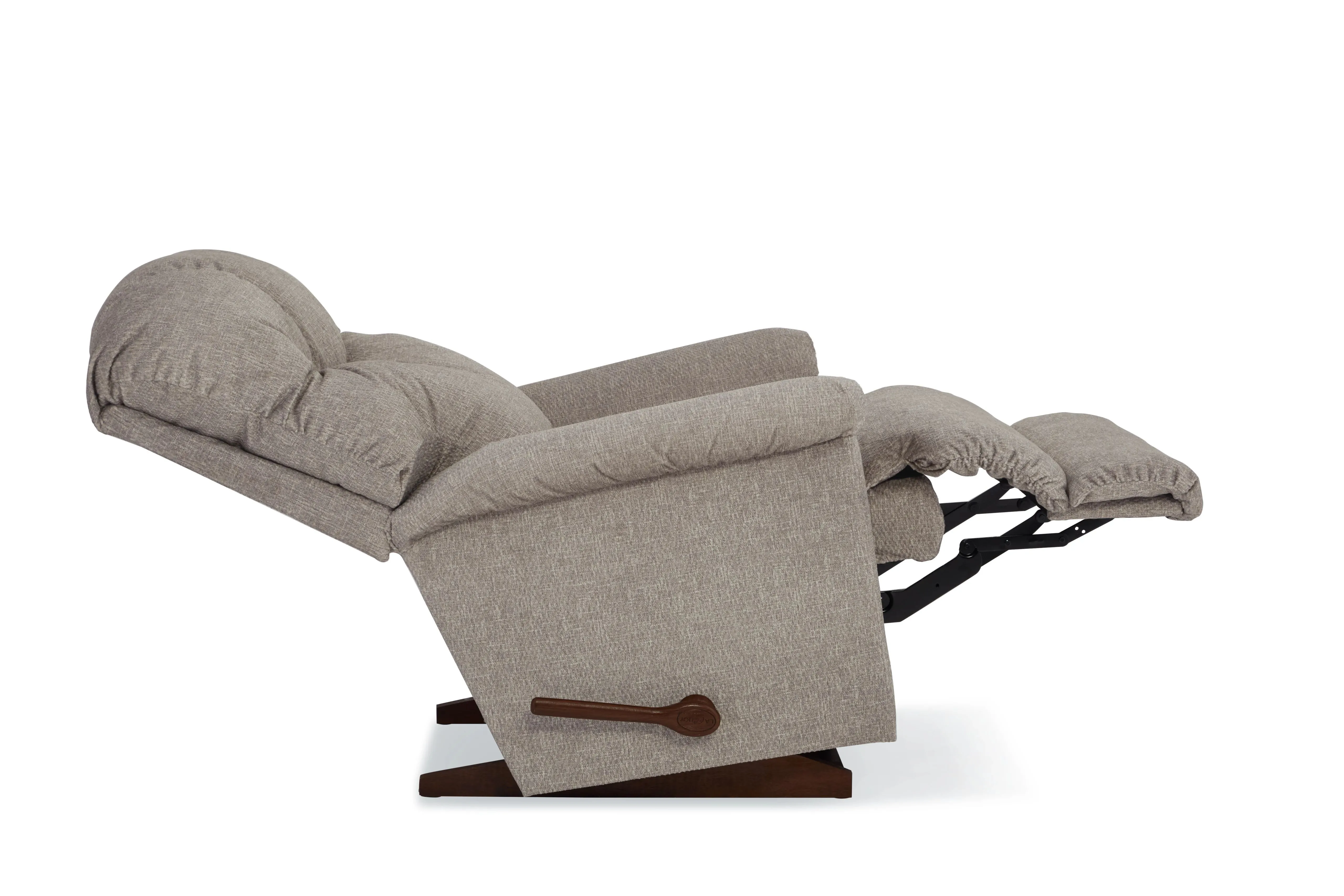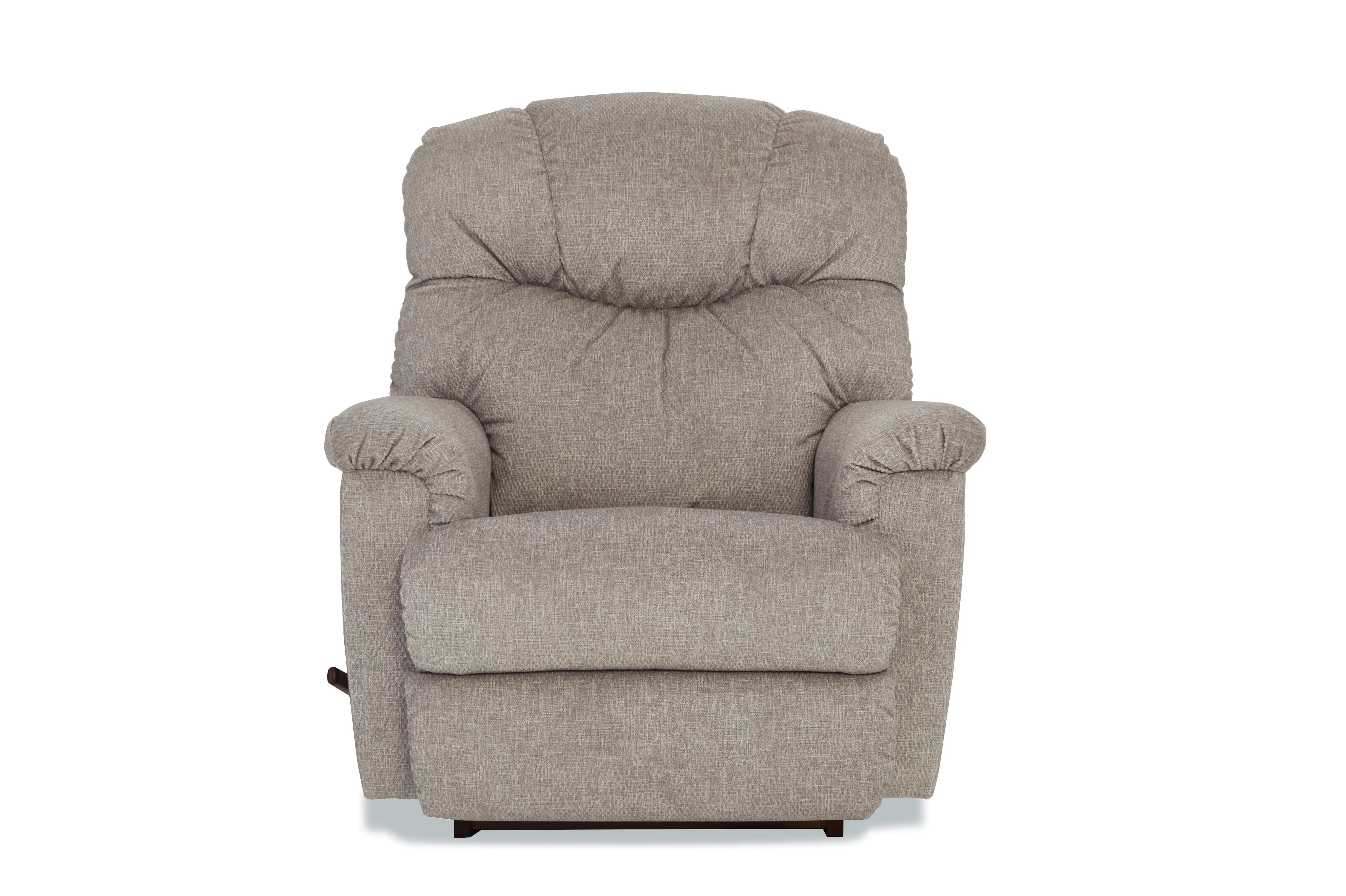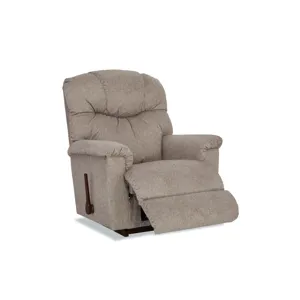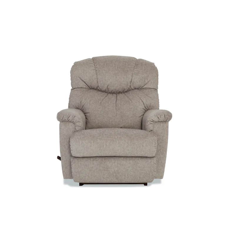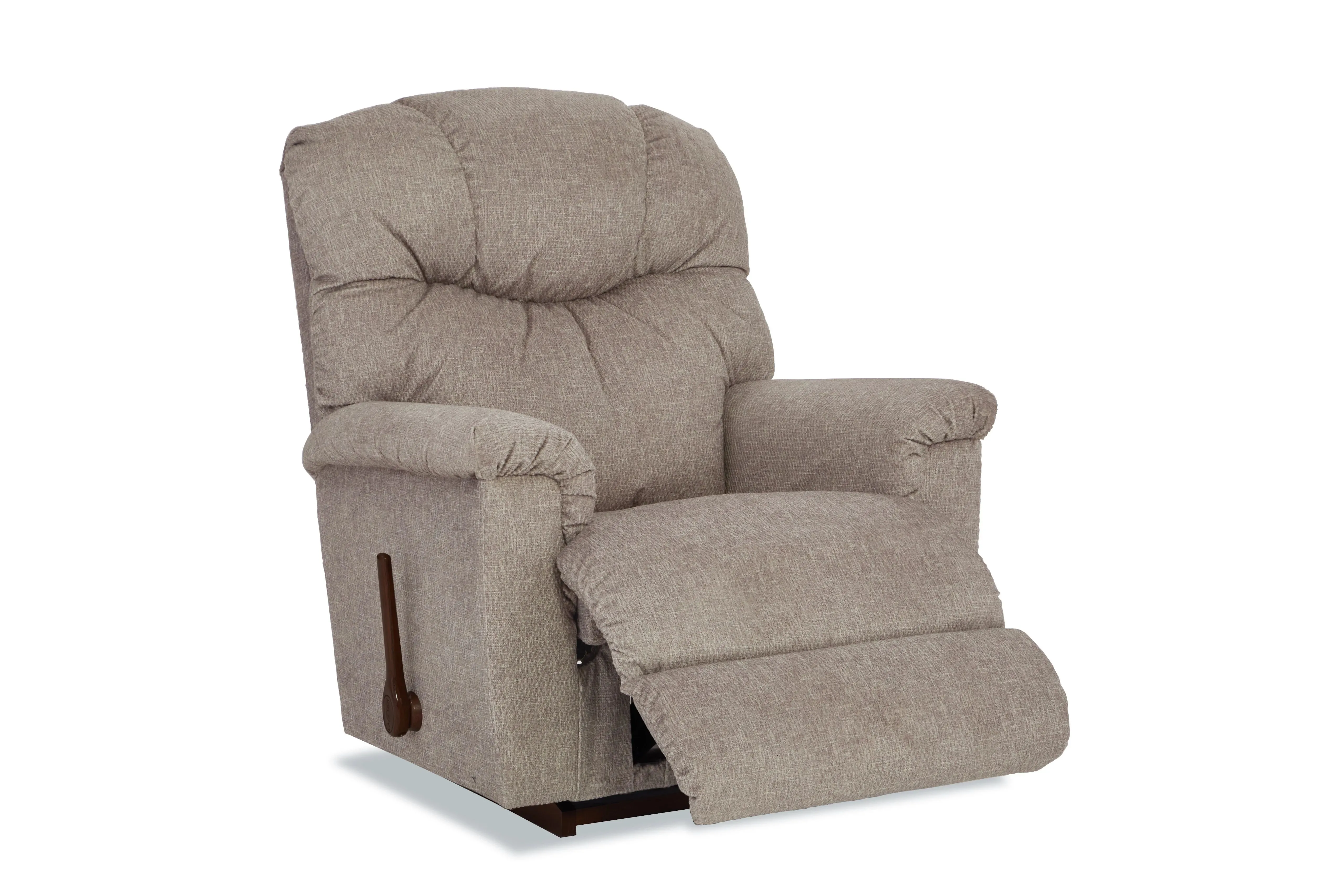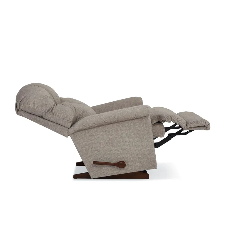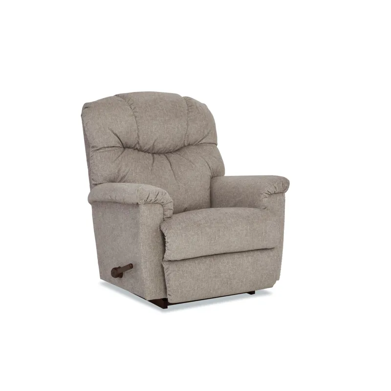With its pillow top arms and tall, curved back featuring detailed channel-stitching, our Lancer Rocking Recliner delivers a large dose of casual style. Simply use the convenient handle on the outside arm to raise the legrest for reading, relaxing or watching TV. When you're not reclining, it's a relaxing rocker with a smooth, graceful motion. Make it yours with your choice of fabrics and other available upgrades.