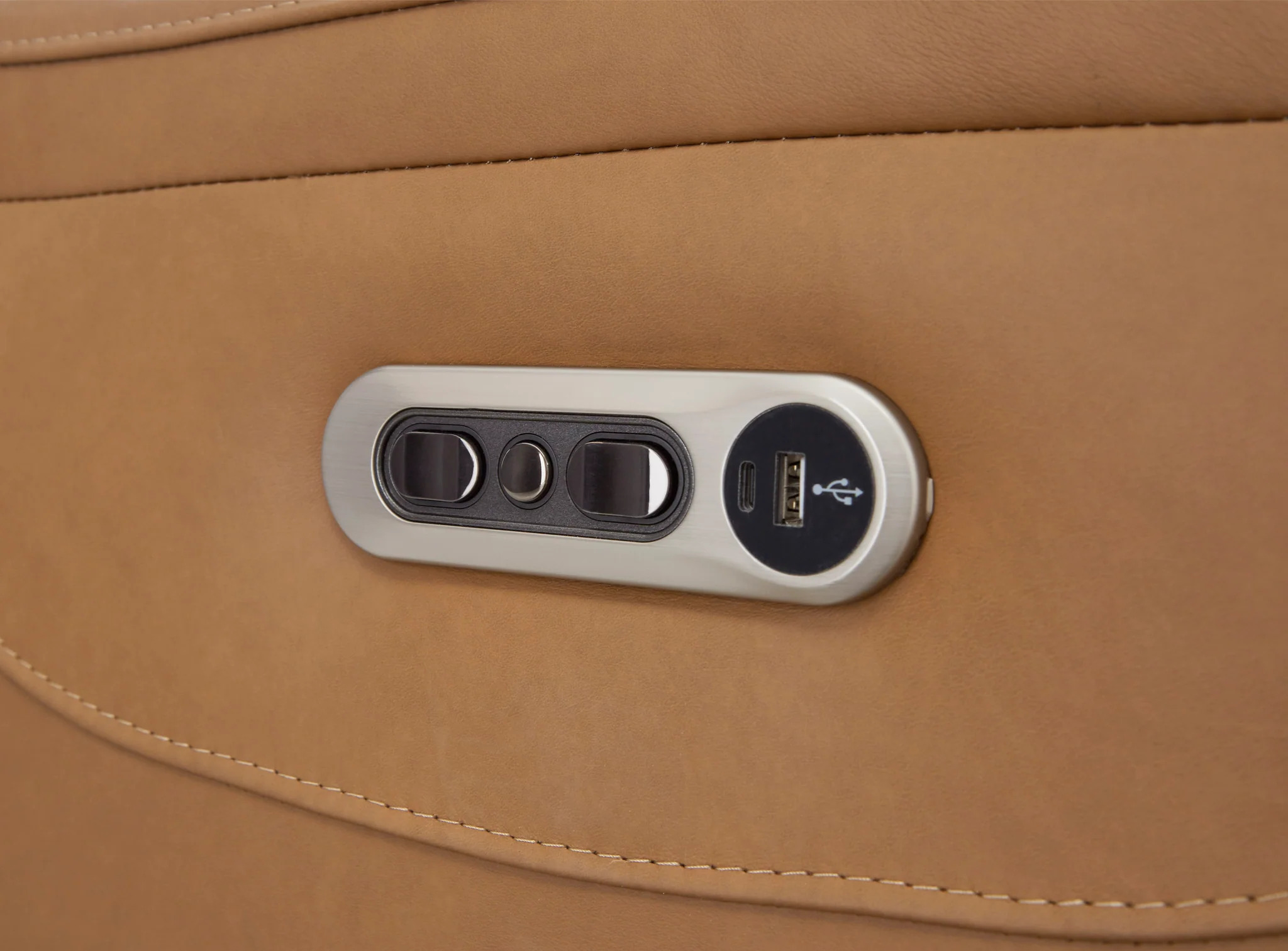 - Power recline switch includes a USB and USB-C ports, and a "Home" button to bring all positions back to upright