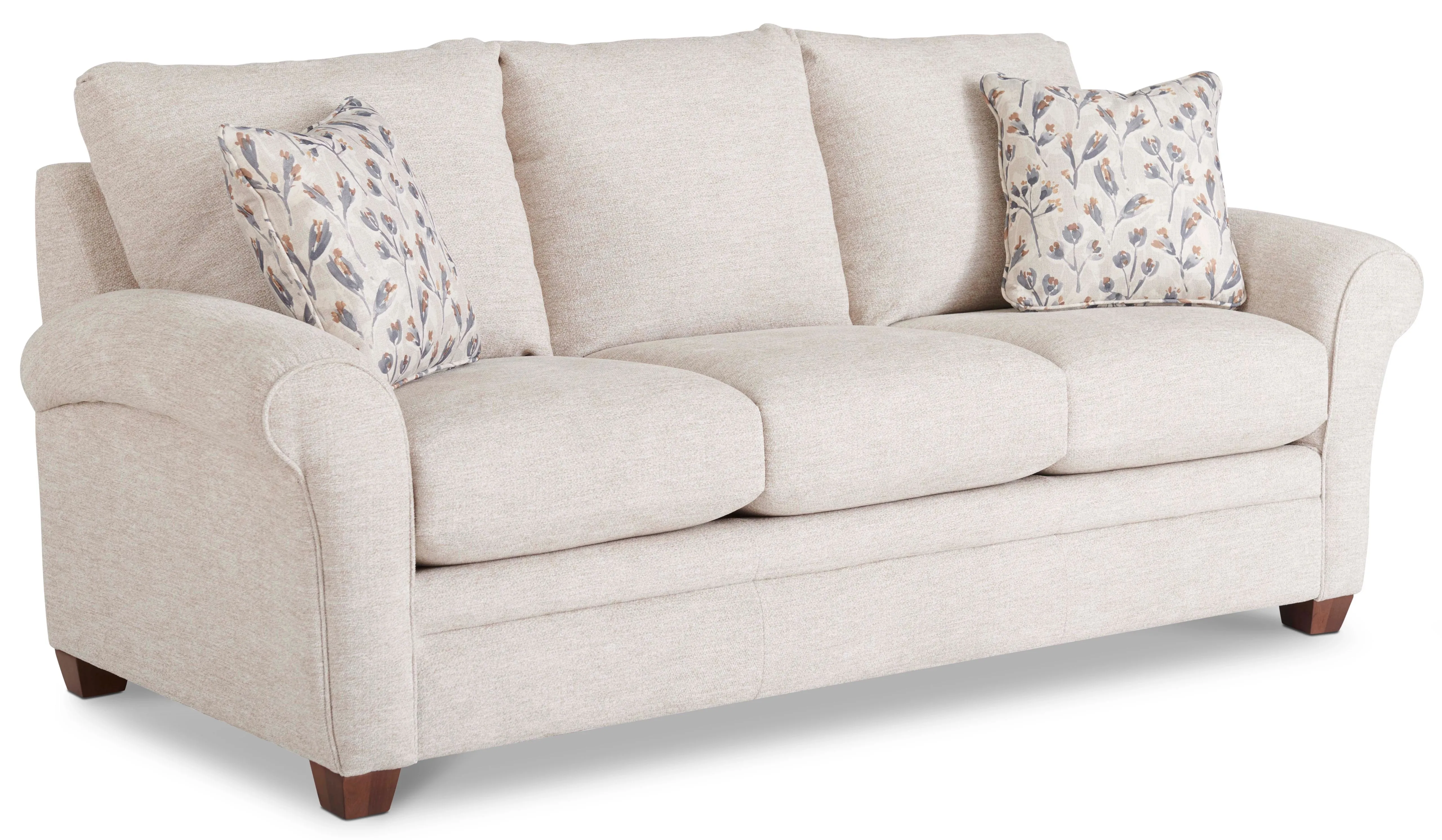There's so much to love about Natalie. With classic lines, deeply cushioned seats and back, flared roll arms and wood legs, it's no wonder these two accent pillows call it home.