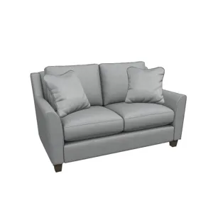 - Decorative wood legs and sleek topstitching accents